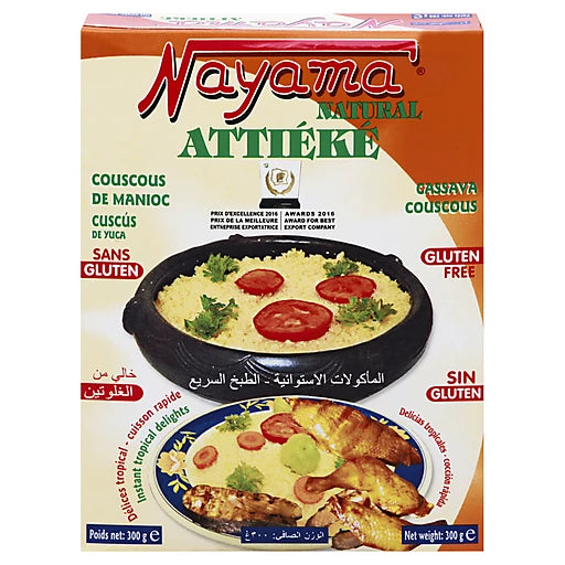 Buy quality Nayama Attieke Cassava Couscous, Gluten Free, 300 g from TripleE International Market. Perfect for your kitchen essentials. Nayama Attieke Cassava Couscous brings authentic West African cuisine to your table with a naturally gluten-free...